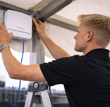 Vi har mange års erfaring med komplekse og avancerede netværksløsninger til festivaler, events, koncerter og gymnasier, hvor der stilles ekstremt høje krav til oppetid og kapacitet. Samtidig leverer vi stabile og sikre netværk til kontormiljøer i både små og store virksomheder.